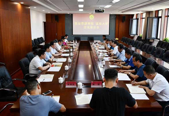 安宇校长从历史沿革、优势与特色、人才培养、学科建设、科学研究、服务地方经济社会发展等方面介绍了西安思源学院的基本情况,对延安大学近年来在人才培养、服务社会、文化传承创新及新校区建设等方面取得的显著成绩表示祝贺。他希望能通过这次交流座谈,充分与我校各职能部门深度合作,为西安思源学院的未来发展,探索出更加全面、更加务实的发展道路与方向。