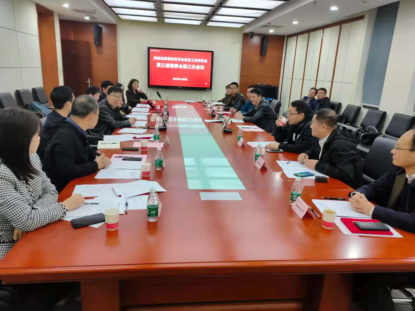 11月5日,由陕西省高等教育学会校友工作研究会主办、陕西师范大学校友会承办的陕西省高等教育学会校友工作研究会第三届理事会第三次会议在陕西师范大学大学长安校区召开。西安交通大学、西北工业大学、西安电子科技大学、西北农林科技大学、陕西师范大学、延安大学等十六所理事单位高校的30名代表参加了会议,对外交流与合作处副处长王瑞、白育虎代表我校理事参加了会议。
