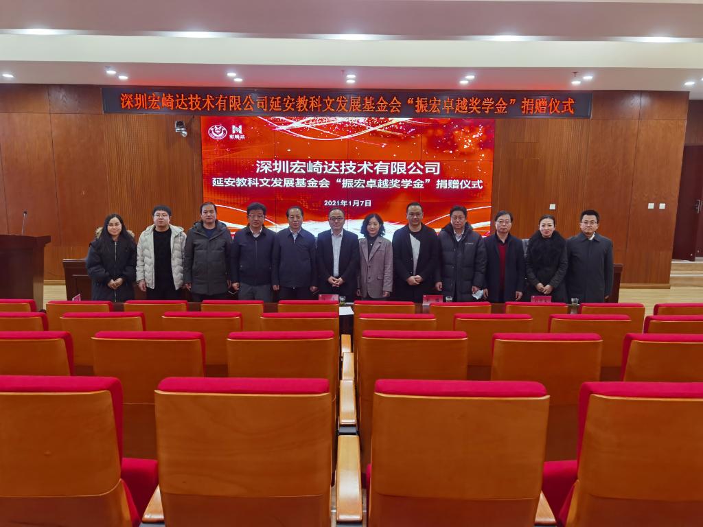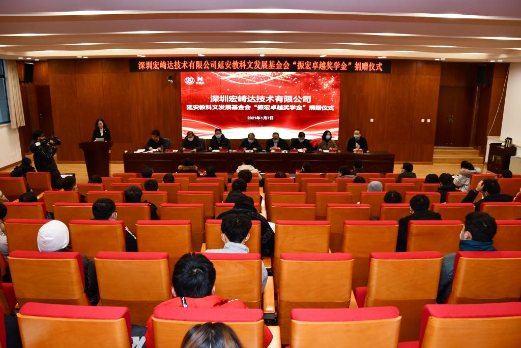 捐赠仪式上,马振宏向延安教科文发展基金会捐赠50万元现金,设立“振宏卓越奖学金”,用于激励表彰延安大学物理与电子信息学院在教学、科研、学科建设、创新创业等方面取得优异成绩的教师和学生。同时,马振宏还向我校校史馆捐赠价值50万元的LED显示屏,支持母校建设发展。付峰副校长代表学校接受了捐赠,并为马振宏颁发了捐赠证书。