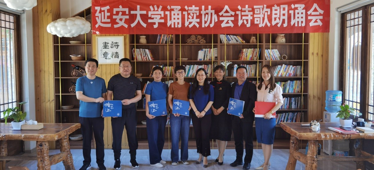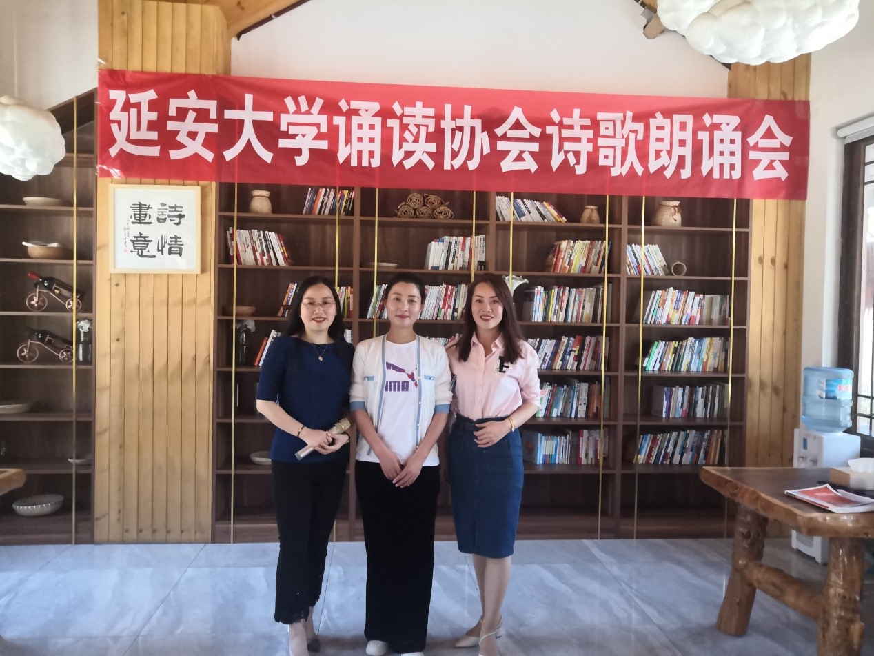 5月9号延安大学诵读协会主席王瑞、副主席淮亚莉等与陕西电视台知名播音员主持人张明鸣、我校秘90校友柳缨及部分校友朗诵筹委会成员在延安嘉岭书院举行朗诵交流讨论会。延安大学工会副主席史晓霞到会,对活动进行指导,同时也表达了对朗诵协会的工作高度评价和肯定。