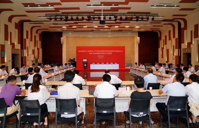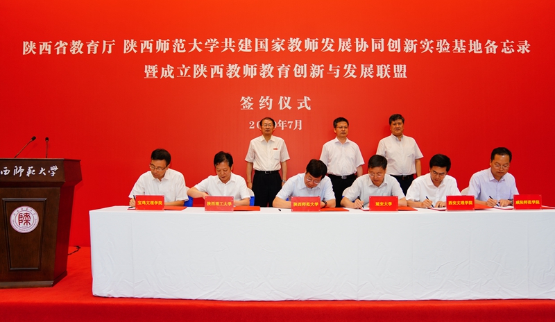 7月13日下午,省教育厅与陕西师范大学共建国家教师发展协同创新实验基地备忘录暨成立陕西教师教育创新与发展联盟签约仪式在陕西师范大学长安校区举行。陕西省人民政府副省长方光华出席签约仪式并讲话。省教育厅厅长王建利,陕西师范大学党委书记程光旭、校长游旭群,我校党委书记张金锁等11所高校党委书记或校长以及相关职能部门负责人等参加签约仪式。仪式由省教育厅副厅长刘建林主持。