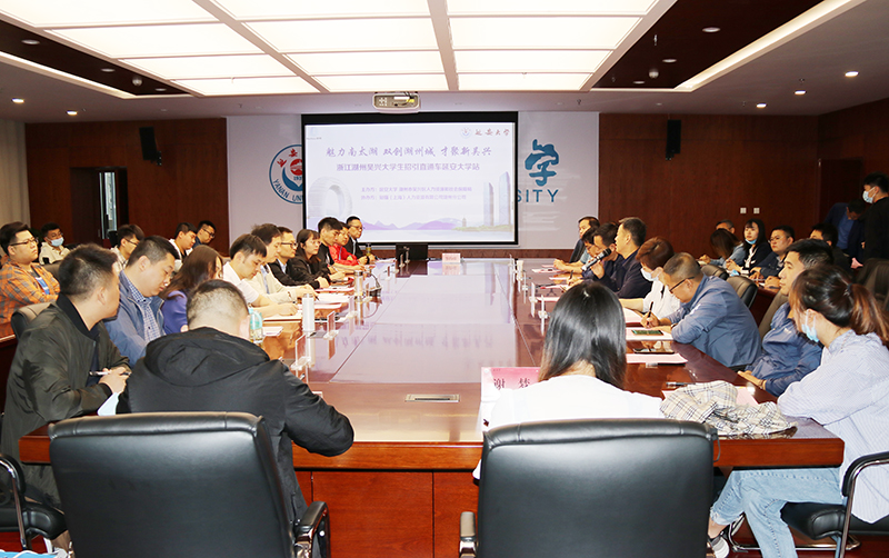 招聘会前,湖州市吴兴区与我校在新校区行政楼二楼会议室签订了校地合作协议。湖州市吴兴区委组织部副部长、区人社局党组书记、局长郭士忠及企业代表15人,学工部部长高峰,学工部副部长、就业中心主任张翔,教务处副处长叶倩,科研处技术转移中心主任贺知章,部分院系副书记、辅导员及毕业生代表参加了签约仪式。签约仪式由张翔副部长主持。