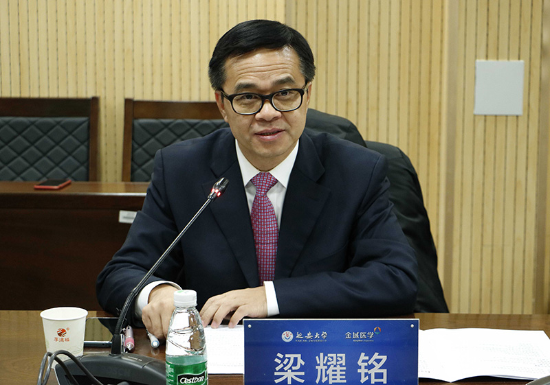 梁耀铭董事长在会上发言指出,延安大学办学历史悠久、人文底蕴深厚,在80多年的办学历程中为党和国家培养了大批优秀人才,同时也积累了用红色基因育人的丰富经验,感谢延安大学及其附属医院一直以来对金域医学的信任与支持。此次战略合作,是双方牢记总书记嘱托、弘扬延安精神的重要体现。合作开展后,将在检验人才培养、科学研究、以精准医学为代表的临床服务等方面,共同开展一系列深度合作。他希望双方的合作能够结出丰硕成果,为延安革命老区以及周边地区老百姓的医疗健康、为健康中国做出更大贡献。