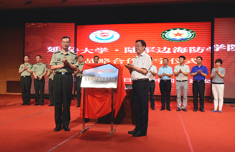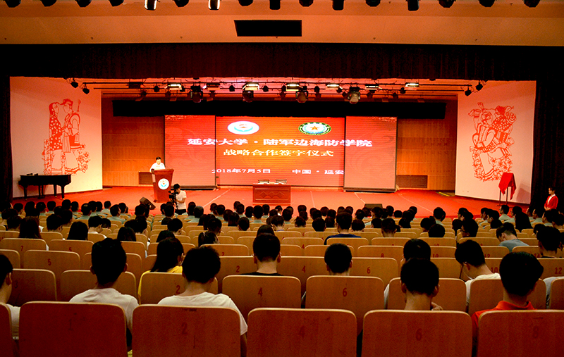 20世纪90年代,延安大学与西安陆军学院(陆军边海防学院的前身)响应党中央“双拥共建”号召,结成“双拥共建”单位,双方在政治建设、教学科研、革命传统教育以及校园建设等领域开展了高起点、深层次、多形式的双拥共建共育活动,在继承与弘扬延安精神、推进军训实践育人,培育新一代大学生和“四有”革命军人等方面取得了重要成果。这次合作协议的签署,是两校学习宣传贯彻党的十九大精神的重要行动,也是贯彻落实习近平总书记对延安大学重要批示精神和“向军民融合发展重点领域聚焦用力”重要指示精神的有力举措。