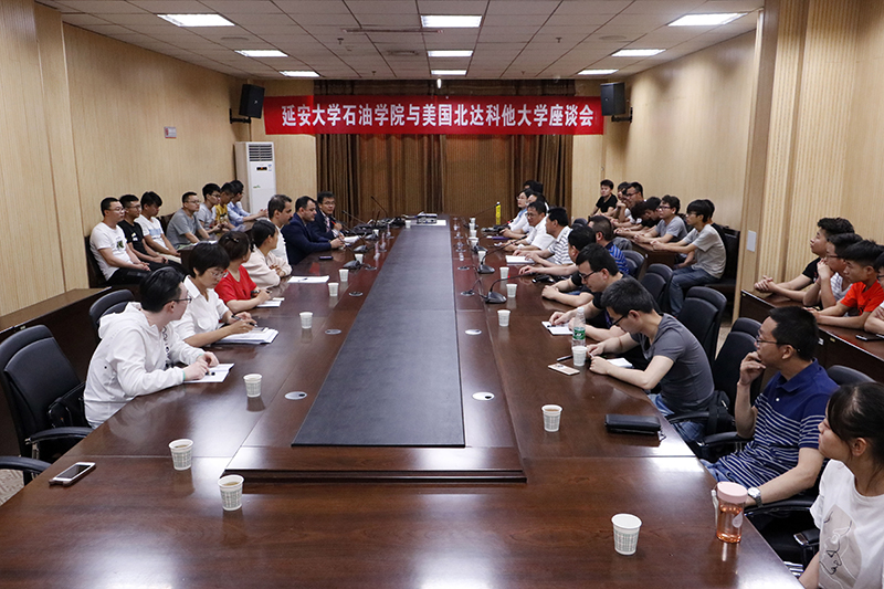 拉索里教授一行首先拜访了我校党委副书记王顺和副校长武忠远。王顺副书记和武忠远副校长对拉索里教授来到我校表示欢迎,并希望以本次交流为契机,进一步深化延安大学与北达科他大学之间的了解,在学生联合培养、师资培养、实验室建设和学科建设等方面开展更加广泛的合作,提升我校石油专业办学水平和服务社会的能力。