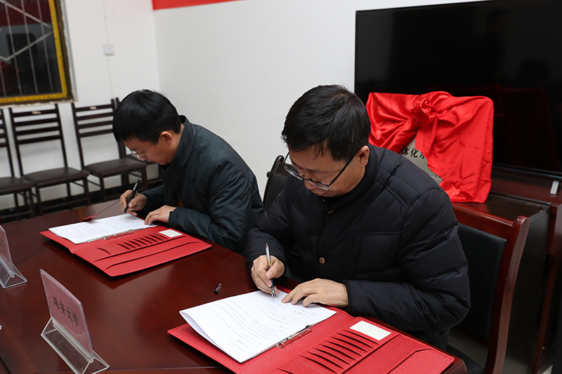 签约仪式上,杨亮才处长和陈顺副县长分别代表双方单位签了字,王顺副书记和陈顺副县长共同为基地揭了牌。