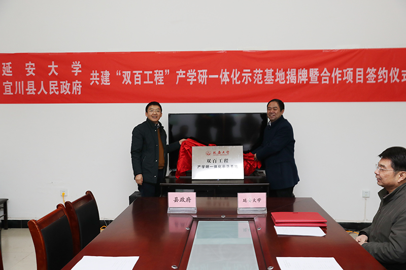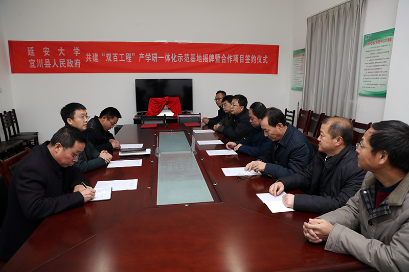12月22日晚,伴随着晴朗夜空的一弯新月,我校与宜川县人民政府产学研一体化示范基地合作项目签约仪式在宜川县英旺乡人民政府会议室举行。我校党委副书记王顺,组织部部长姚正宽、副部长贺启翔,科研处处长杨亮才、副处长郭永平,附属医院党委书记周秦,生命科学学院教授邓振山,党委宣传部有关领导,以及宜川县副县长陈顺、教育局局长赵军星等参加了签约仪式。签约仪式由宜川县英旺乡主任科员张广武主持。