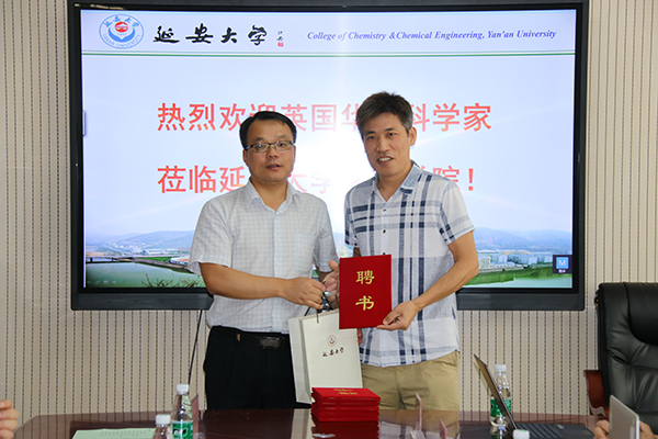 开幕式上,王刚副校长向专家们介绍了我校基本情况,希望在英专家学者积极奉献智慧,促进我校相关学科创新发展、高水平发展;同时,以自己的学术影响,关注延大、宣传延大,不断扩大延大的国际影响力。英国伦敦大学学院唐军旺博士代表专家组介绍了此访的目的,表示愿意为学校的建设和发展做出积极努力。随后,王刚副校长代表学校向各位专家学者颁发了兼职教授聘书,希望专家学者常回学校开展学术交流。