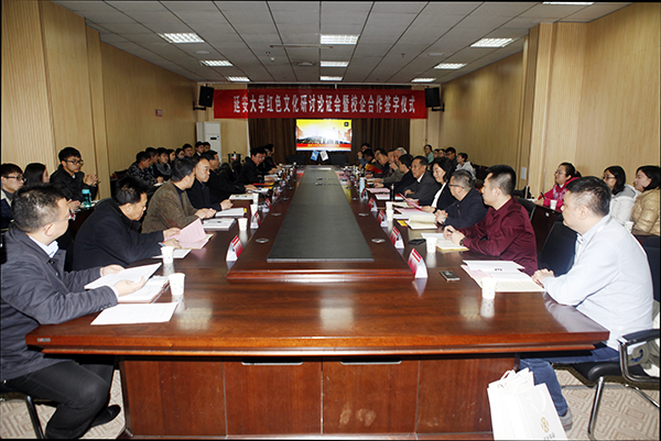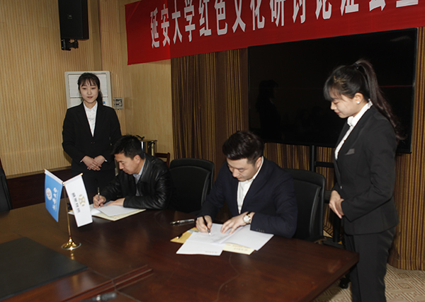 3月24日上午,延安大学红色文化研讨论证会暨延安大学与陕西盛金投资管理有限公司校企合作签字仪式在校图书馆二楼会议室举行。我校校长张金锁、副校长武忠远,陕西盛金投资管理有限公司董事长白玉,陕西盛金投资管理有限公司总经理蒙浩,负责项目运营、内容、技术的3位总监,我校党委宣传部、学工部、教务处、团委等单位负责人以及项目团队的老师和学生共40余人参加了会议。会议由我校党委副书记田伏虎主持。