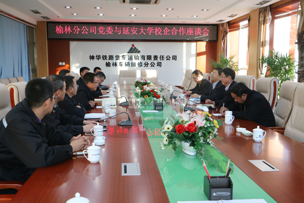 11月7日,我校科研处处长杨亮才、对外交流与合作处处长吕达等一行4人赴神华铁路货车公司榆林分公司洽谈校企合作事宜。洽谈期间,我校与神华铁路货车公司榆林分公司进行了座谈交流,并与分公司党委签订了校企合作战略框架协议。