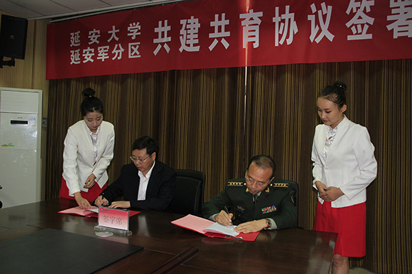 签字仪式上,延安军分区政治委员蔺雨大校从共建共育指导思想与目标、组织领导、共建共育内容、共建共育工作机制等四个方面对协议进行了介绍。随后,唐春森司令员和张金锁校长在协议书上签了字。根据协议,双方今后将建立长期稳定、务实有效的合作关系,围绕促进军民融合深度发展,实现部队和高校合作共赢,结成全面、紧密、深入的共建共育合作关系,在创新理论研究、传承红色基因、强军智力支持、优质兵员征集、学校国防教育、后备力量建设等六个方面开展深入合作。